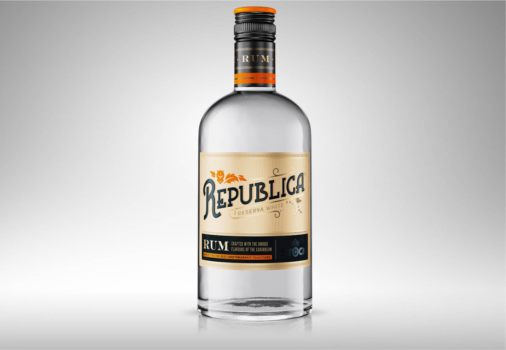Render 3D butelki Rumu Republica. Przygotowaliśmy dwa rendery jasną oraz ciemną, butelek rumu republica dla stock-polska.Projekt etykiety wykonało brandface